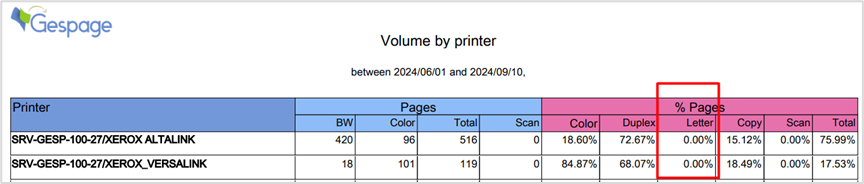 - Fixed support for paper format when American paper usage is configured in Gespage