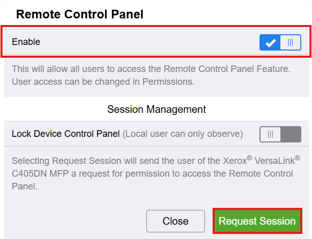 Xerox MFPs allow direct remote panel access through the device's web interface. Unlike Lexmark devices, administrator credentials are required for access.