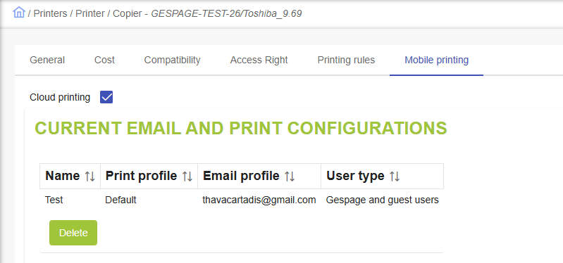 If all goes well, you will receive a confirmation email with a print code and a link. Debug: Email printing depends on the Gespage Mobile Service. You can view the logs in Program Files\Gespage\GespageCore\Geps\Logs\geps_mobile.log