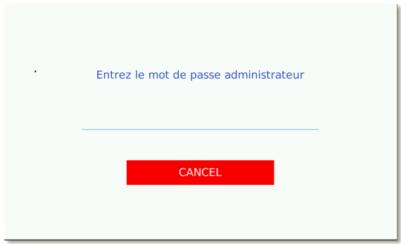 Pour entrer dans le menu de configuration du cBot, appuyez sur les 4 coins de l'écran à la manière d’un Z (en haut à gauche, en haut à droite, en bas à gauche, en bas à droite). Si les 4 coins sont appuyés correctement, l'écran suivant est affiché :