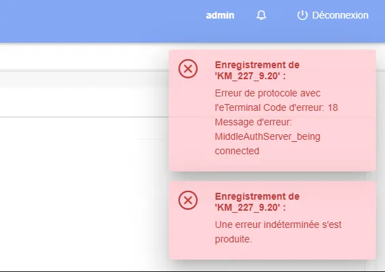 Si vous essayez de pusher un eTerminal existant en v9.1 à partir de la version 9.2 de Gespage, vous tomberez sur l'erreur ci-dessous: