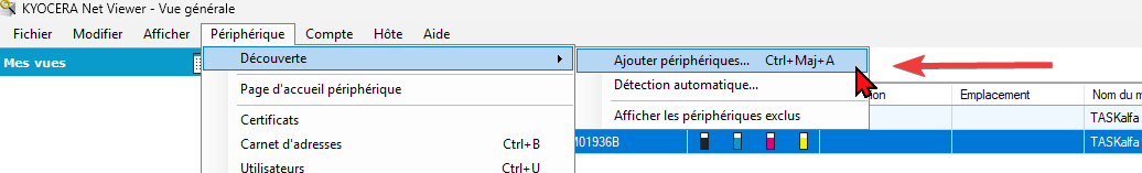 Étape 1 : Ajouter les MFP dans Kyocera Net Viewer