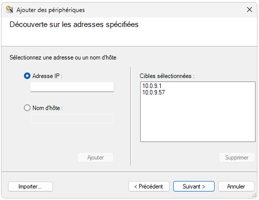 Adresse IP(pour un seul MFP)Plage d’IP(pour un ajout groupé)