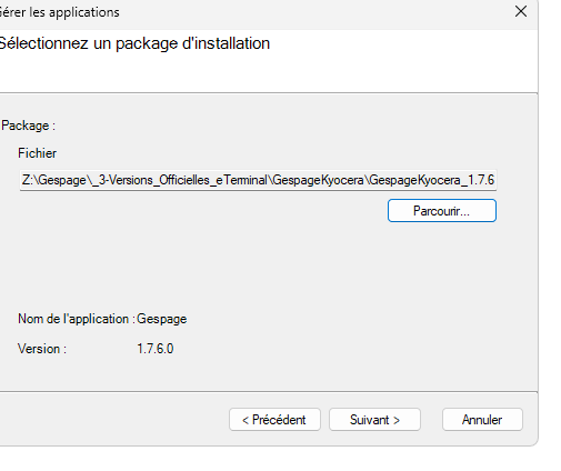 Sélectionnez le paquet eTerminal Kyocera et Lancez l’installation :