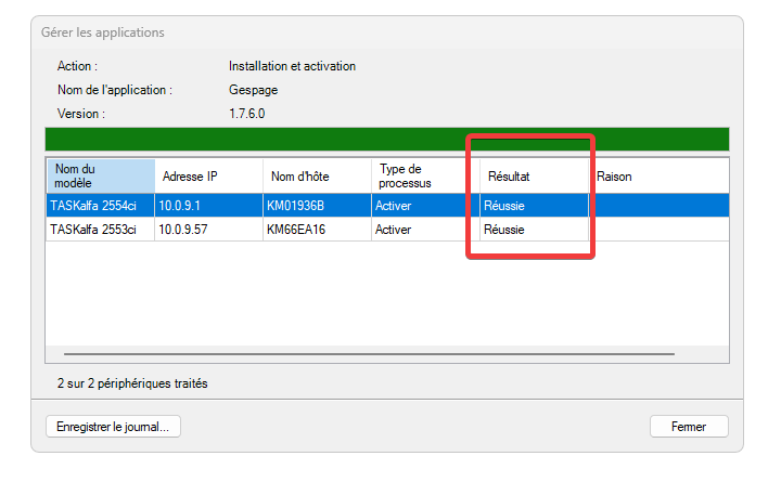 Sélectionnez les MFP sur lesquels vous souhaitez installer l’application Gespage :