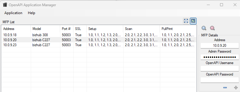 Ensuite, il faut lancer l’application OpenAPI Application Manager, qui est un outil de gestion des applications sur les équipements Konica.