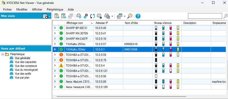 Une fois démarrée, l’application affiche la liste des imprimantes avec leurs modèles et leurs adresses IP.