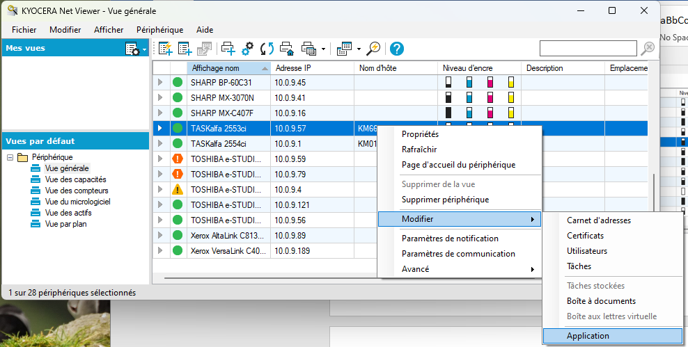 Ensuite, il faut lancer l’application KYOCERA Net Viewer, qui est un outil de gestion des applications sur les équipements Kyocera.