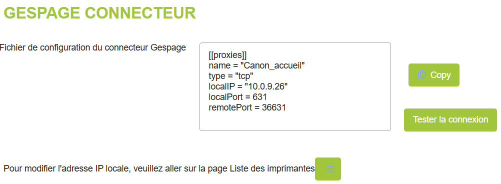 - Améliorations de la configuration du connecteur Gespage
